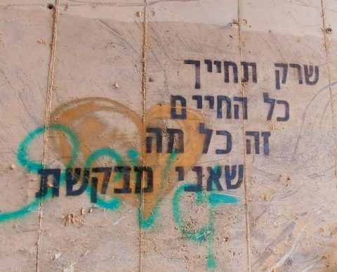 מְקֻלֶּלֶת בַּבֹּקֶרמְקֻלֶּלֶת בָּעֶרֶבמְקֻלֶּלֶת בַּצָּהֳרַיִםמְקֻלֶּלֶת גַּם בָּאֶמְצַע. מַבְלִיגָה בַּבֹּקֶרמְפַיֶּסֶת בָּעֶרֶבמַסְבִּירָה בַּצָּהֳרַיִםאוֹהֶבֶת גַּם בָּאֶמְצַע. חֲזָקָה בַּבֹּקֶר,מְרֻקֶּנֶת בָּעֶרֶב,לֹא יְכוֹלָה יוֹתֵר בַּצָּהֳרַיִםוְגַם לֹא יְכוֹלָה לָלֶכֶת בָּאֶמְצַע. מְקֻלֶּלֶת וַעֲדַיִן אוֹהֶבֶת.בֹּקֶר,
